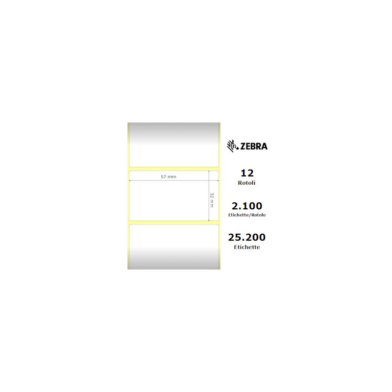 zebra etichette 800262-127 12pck z-select 12 rotoli, carta termica, 2000d, 57x32mm, 2100 e originale